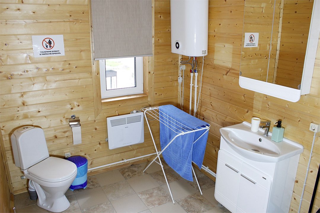 Санузел оборудован вместительным бойлером и душевой кабиной. Две спальни, оборудованная кухня, камин, спутниковое ТВ, мангал бесплатно, открытая терраса.