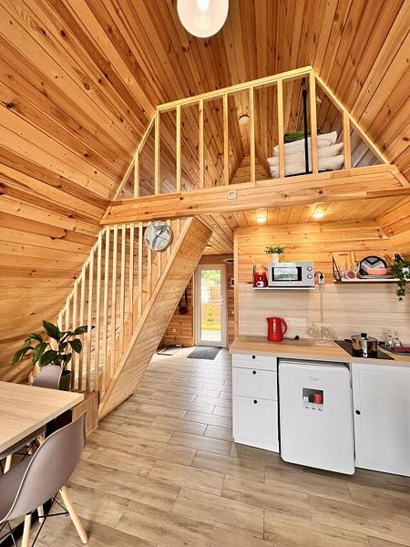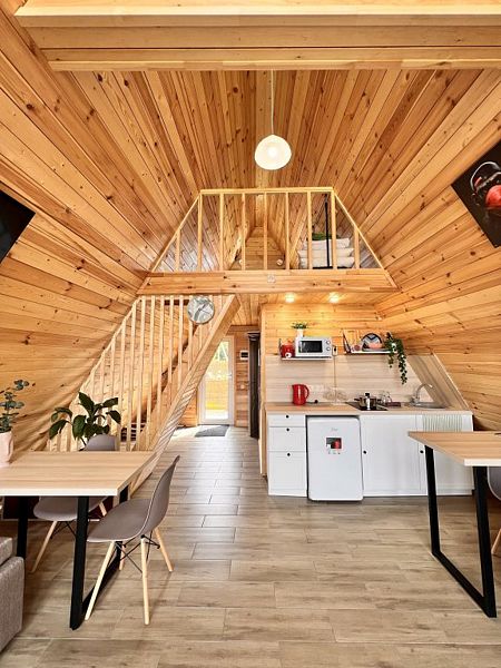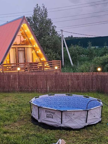 Идеальный вариант для уединенного отдыха и вечеринок в современном доме в стиле A-frame. Новый современный дом для компании из 6 гостей. Дополнить комфорт поможет терраса с мебелью, откуда открывается отличный вид. Прекрасное место, где можно посидеть с чашечкой кофе или чая на свежем воздухе.
