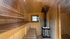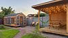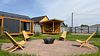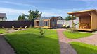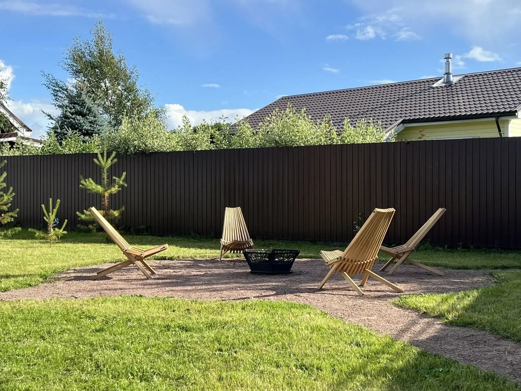 Дом огорожен глухим забором по всему периметру. Во дворе установлены деревянные кресла и костровая чаша, есть большой мангал и баня на дровах, оборудованная баком для обливания ледяной водой.