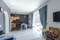 Кухня полностью оборудована для самостоятельной готовки. Имеется плита, духовка, холодильник, микроволновая печь и набор посуды. Также есть возможность заказать вкусные завтраки.