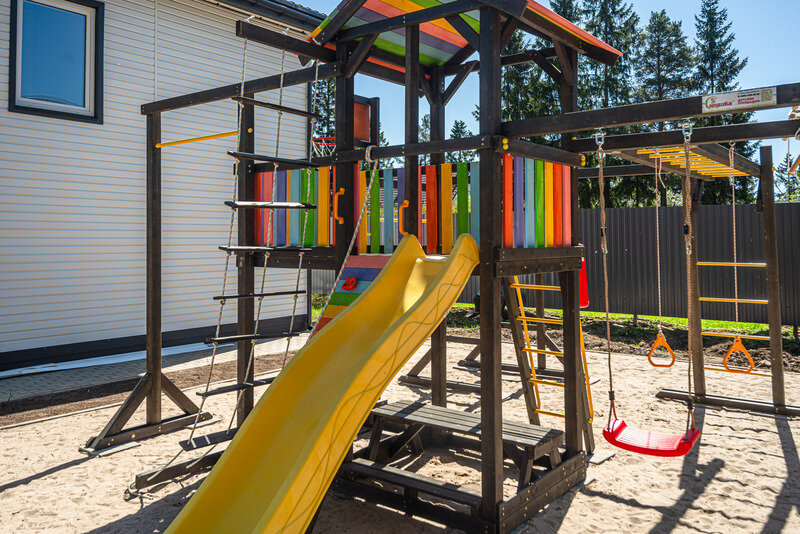 Отдохнуть на свежем воздухе можно в уютных беседках у мангальной зоны, имеется детская площадка, настольный теннис, батут и прокат велосипедов. А в 200 м протекает река Тосна.