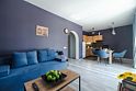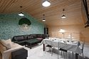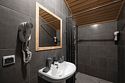 Большая гостиная площадью 50 кв.м обустроена для проведения торжеств и релакса с двумя удобными диванами, обеденным столом для большой компании, 80/дм. телевизором, саунд баром, просторным балконом, а так же лестницей, ведущей на первый этаж в спа-зону.