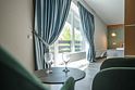 Спальные места имеют ортопедические матрасы и качественное постельное белье. Для маленьких гостей предусмотрены кроватки за дополнительную плату и стульчики.
