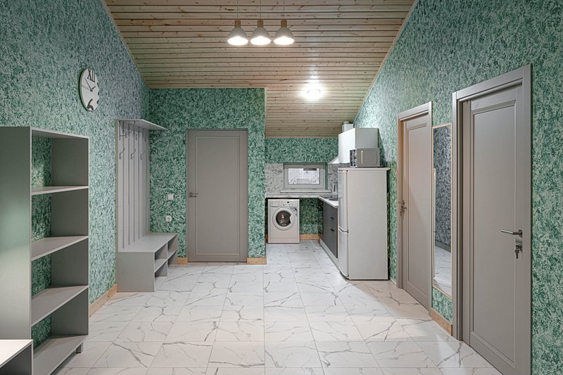 Каждый дом подключен к высокоскоростному интернету, смарт тв, Стиральная машина, гладильная доска утюг и фен.