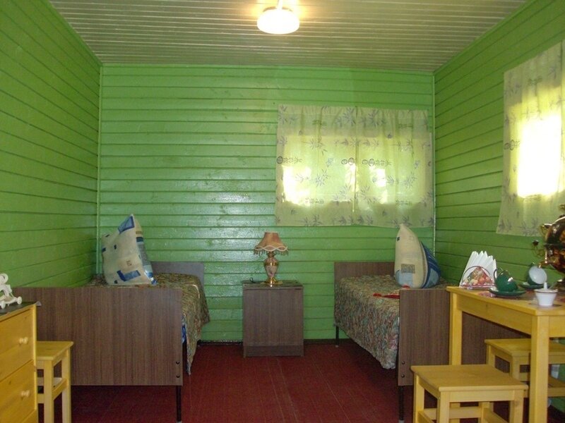 Летний Домик рассчитан на 6 человек. Имеет два номера, у каждого свой вход. Внутри: - 3 кровати - комод для хранения вещей - холодильник. Все удобства на улице в шаговой доступности. - "Кухня - столовая" рассчитана на 50 посадочных мест. Имеет зону для приготовления еды (газ), зону для посуды (3 раковины, горячая вода). - "Душевой комплекс". Имеет 2 душевые кабины, 3 раковины, а также стиральную машину. Дополнительная плата за стоянку машины 100 руб./сутки.