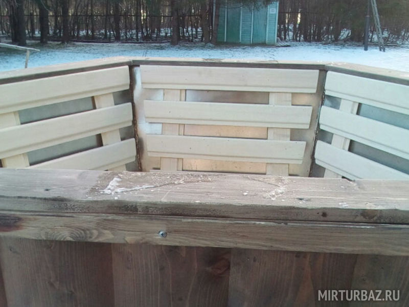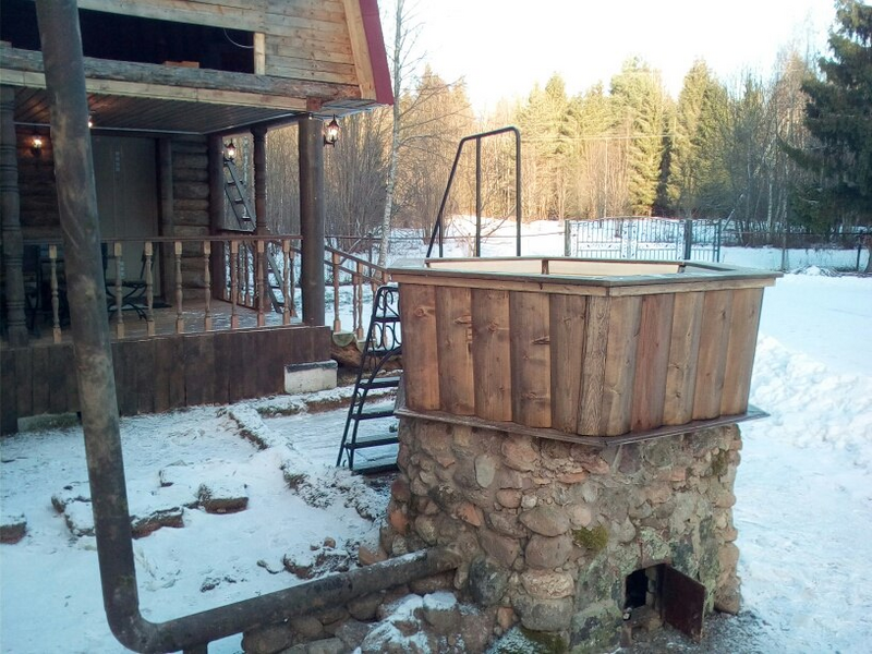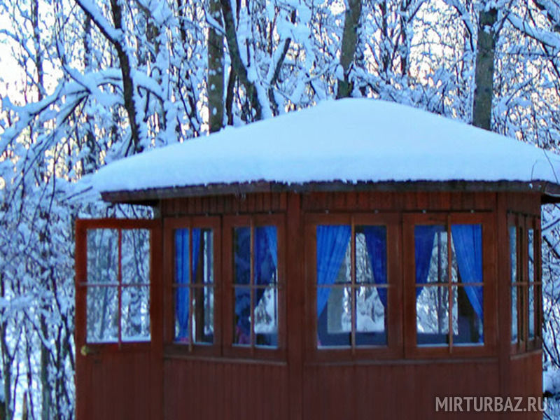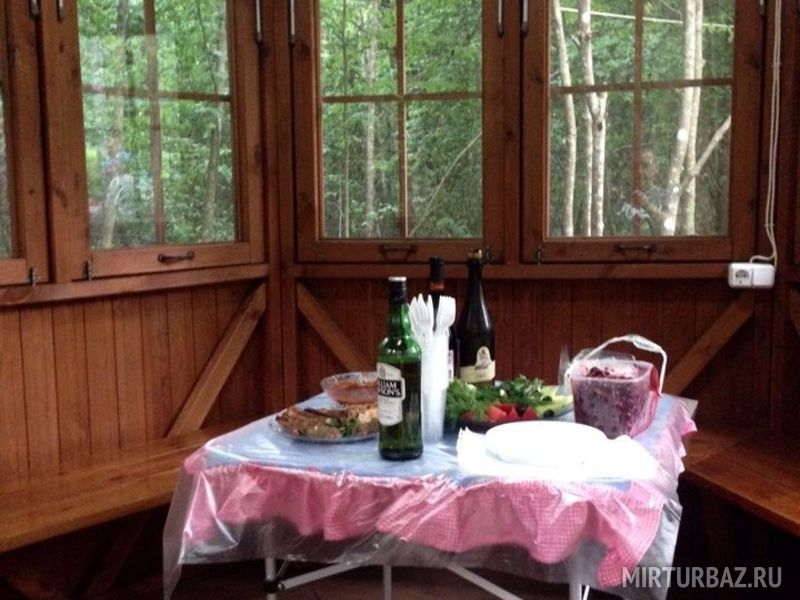 Банный комплекс включает в себя парную на 5 человек, место для переодевания, место для отдыха, туалет, телевизор, самовар, душевую, фитобочку. Веранда на 8 человек.