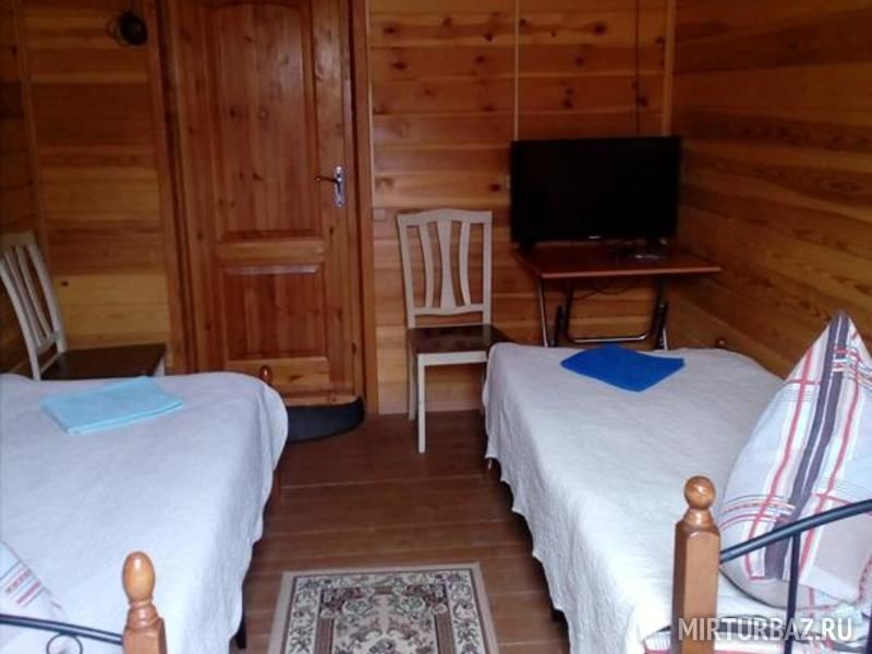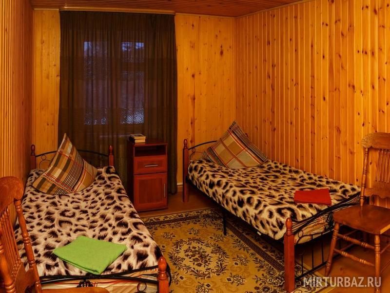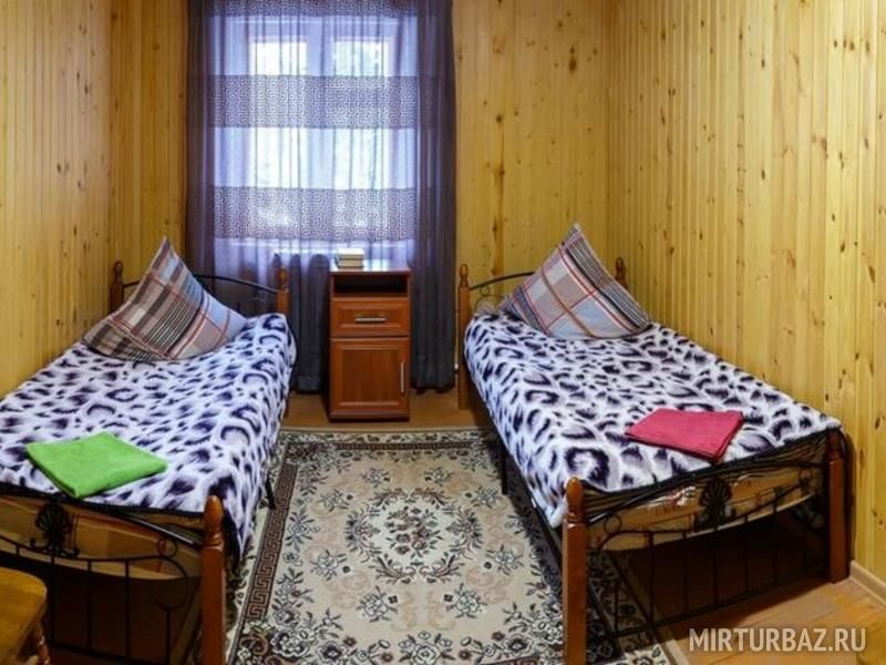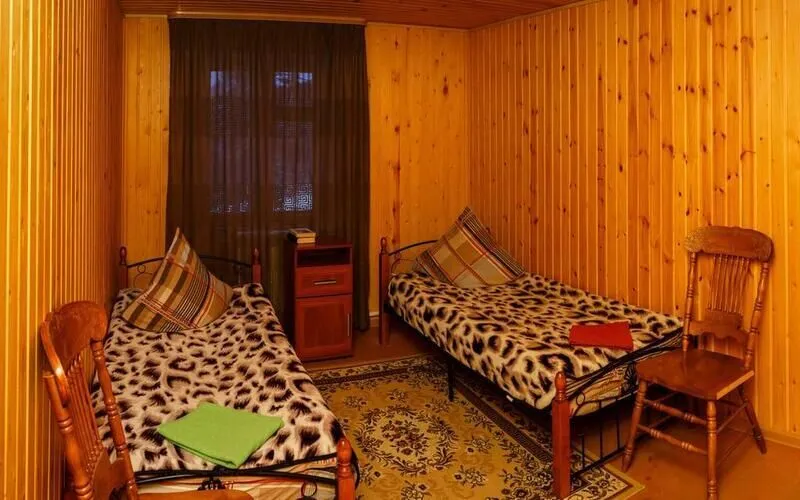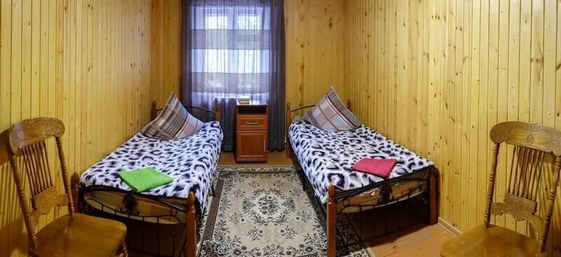 В номере: две односпальные кровати, прикроватные тумбочки, шкаф, стол, стулья, телевизор с плоским экраном. Удобства на этаже.