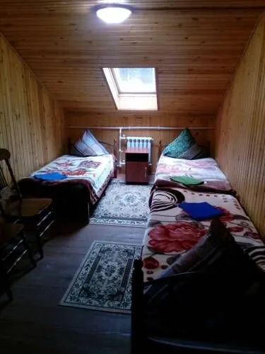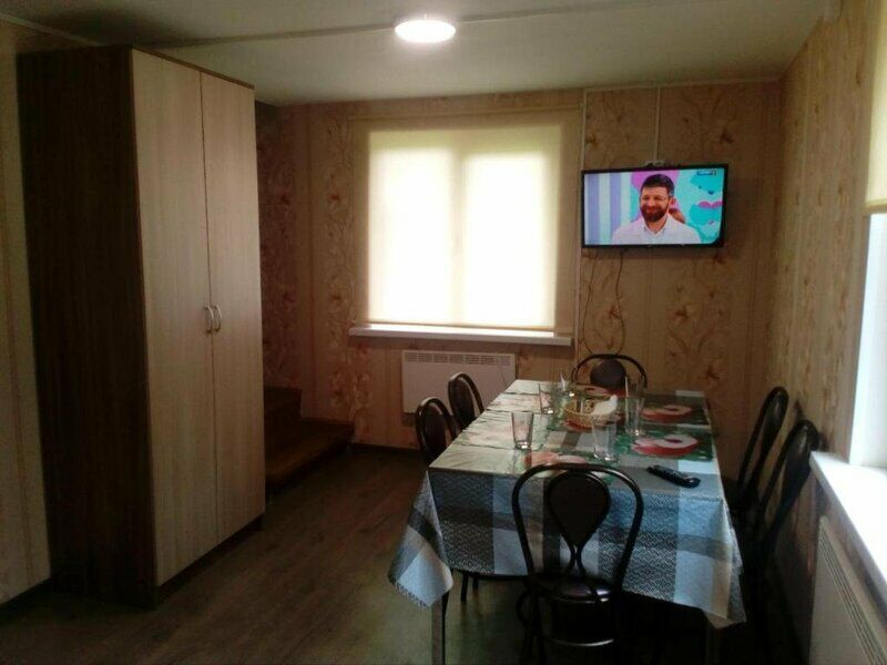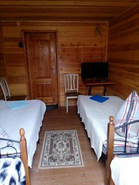 В номере: три односпальных кровати, прикроватные тумбочки, шкаф, стол, телевизор с плоским экраном. Удобства на этаже.