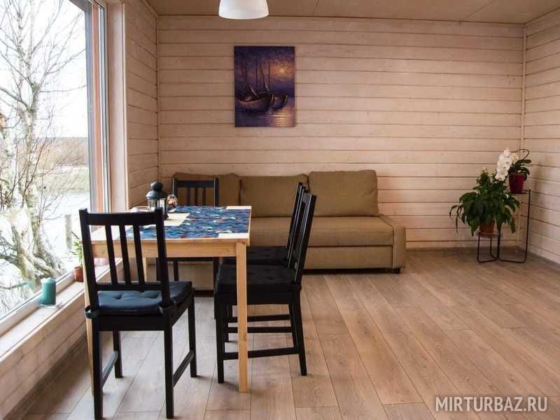 Коттедж с видом на озеро. В коттедже 6 спальных мест. Может спокойно разместиться компания или семья. Имеется вся необходимая техника и посуда. Есть терраса с барной стойкой и барными стульями. Гамак. Балкон с нишей для чтения или отдыха. Свой причал у каждого коттеджа. Рыбачить можно прямо с террасы. У каждого коттеджа имеется своя зона барбекю с уличной мебелью и мангалом.