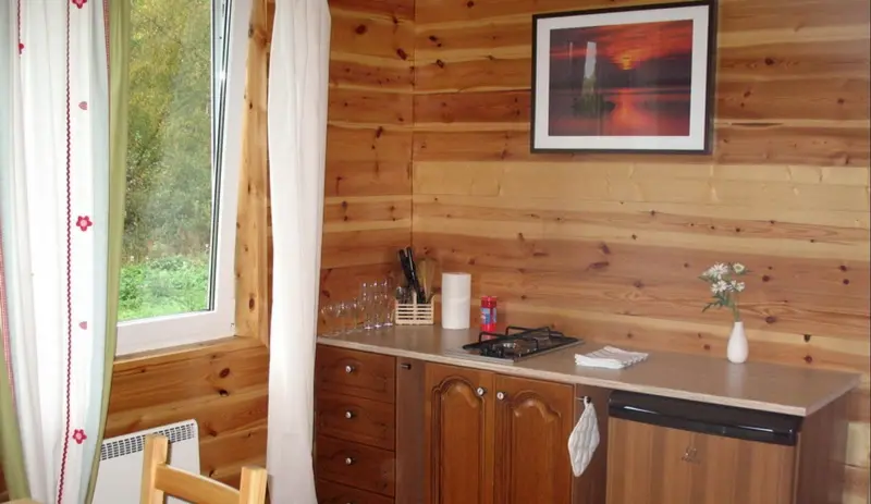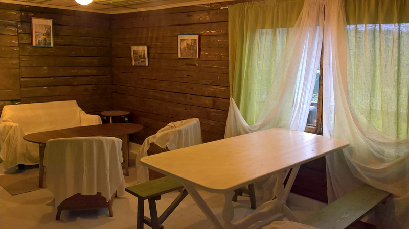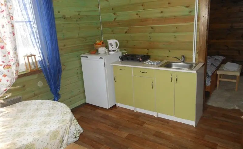В коттедже имеется: оборудованная кухня, душевая кабина, туалет, горячая вода, телевидение, место отдыха с мангалом.