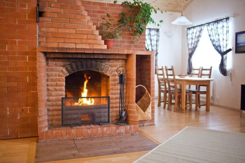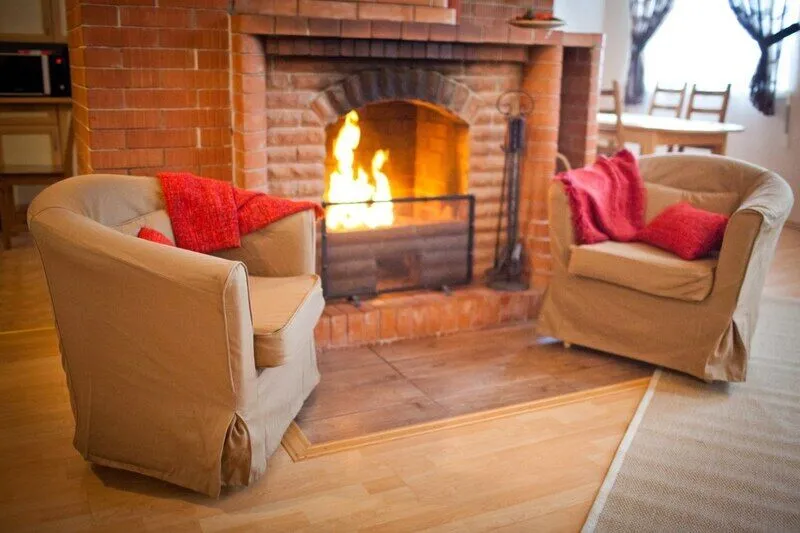 Холодильник, газовая плита, отопление (теплый пол) а также небольшой камин, набор всей необходимой посуды.
