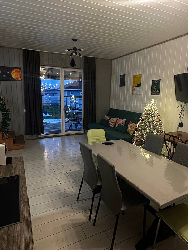 Для гостей созданы все условия для приятного пребывания: от телевизора с доступом к популярным стриминговым сервисам до высокоскоростного интернета и Wi-Fi. Кухня оборудована всем необходимым: духовкой, варочной панелью, посудомоечной машиной и кофемашиной. Просторная открытая терраса идеально подходит для отдыха на свежем воздухе, а зона для барбекю станет прекрасным местом для семейных праздников и дружеских встреч.