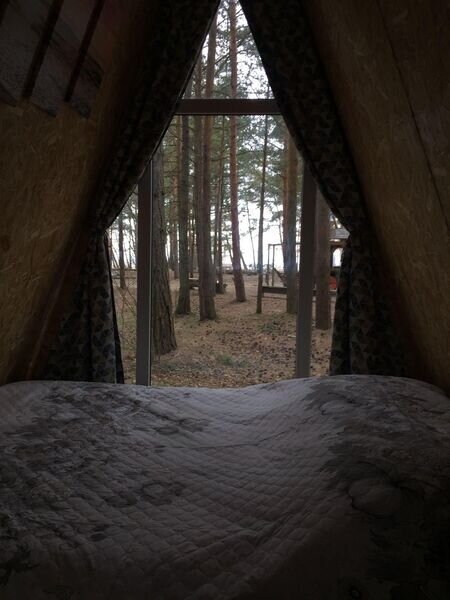 Тихий треугольный домик, с видом на лес. Утепленный, с отличной звукоизоляцией.
