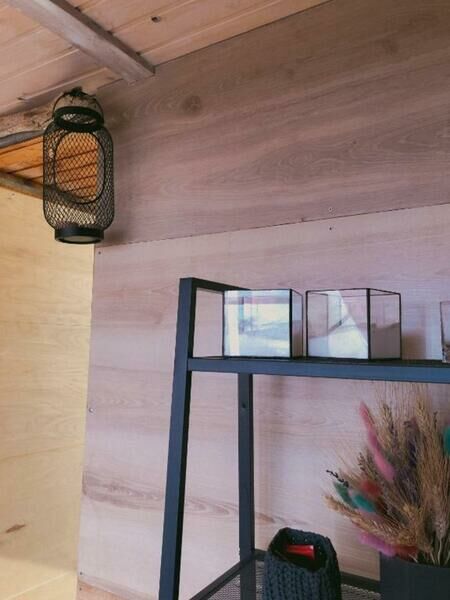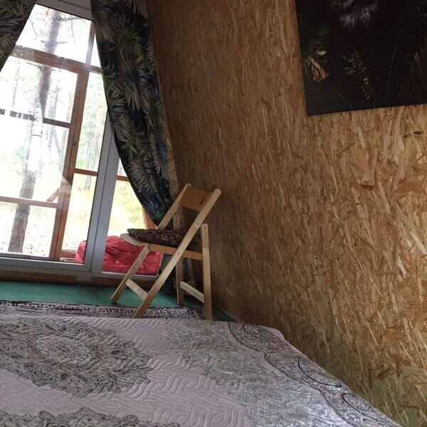 Утепленный, с отличной звукоизоляцией. Постельное бельё входит в цену. Есть мангал.
