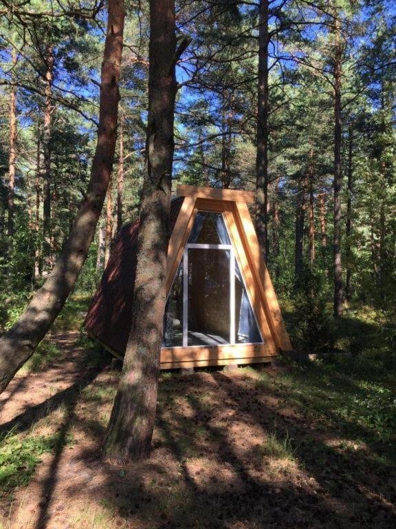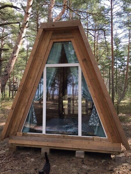 Тихий треугольный домик для двоих, с видом на лес.