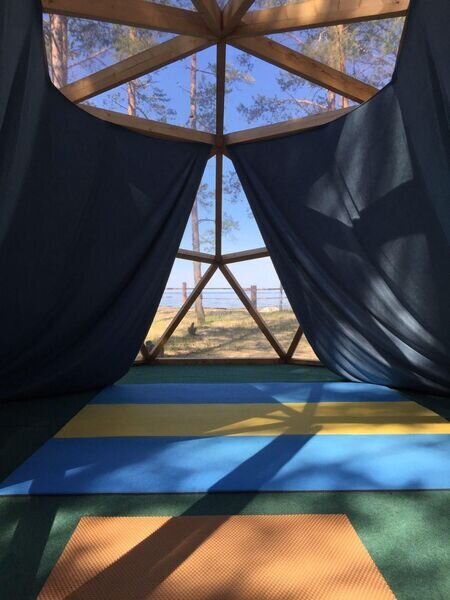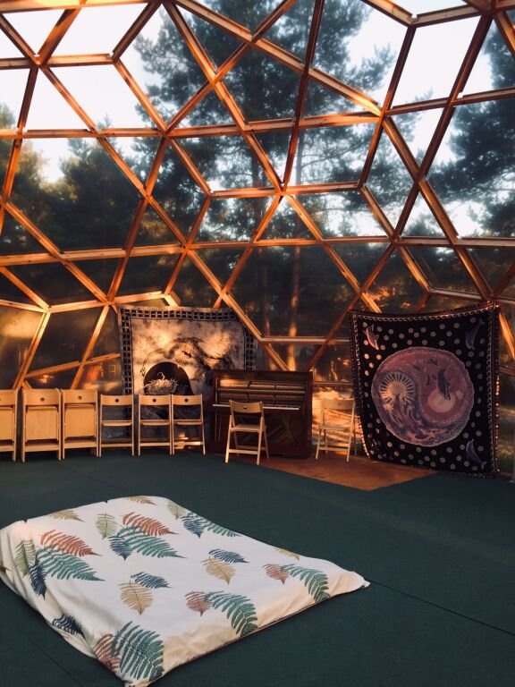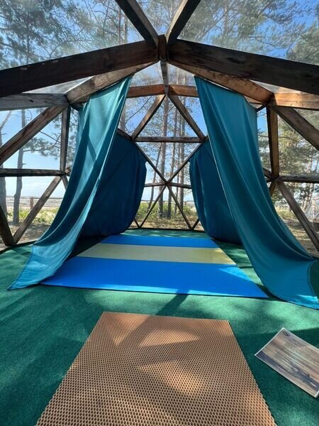 Просторный купол для проведения йоги и различных практик, мероприятий до 20 человек.