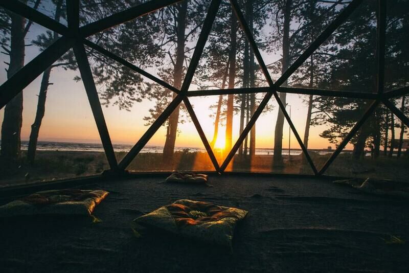 Уникальное предложение для гостей сёрф-станции Wind Hunters Station — «Большая Сфера для двоих». Огромная высота геокупола и прозрачные стены делают эту локацию пожалуй самой завораживающей! Вы испытаете полное единение с природой. Звёзды, закат, сосны и шум прибоя для вас двоих!