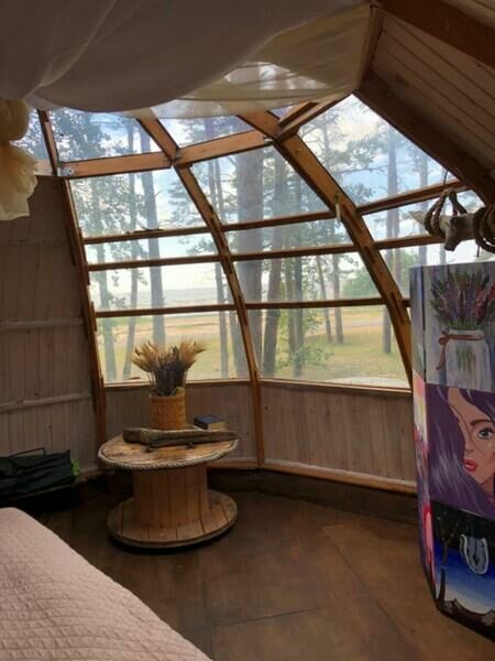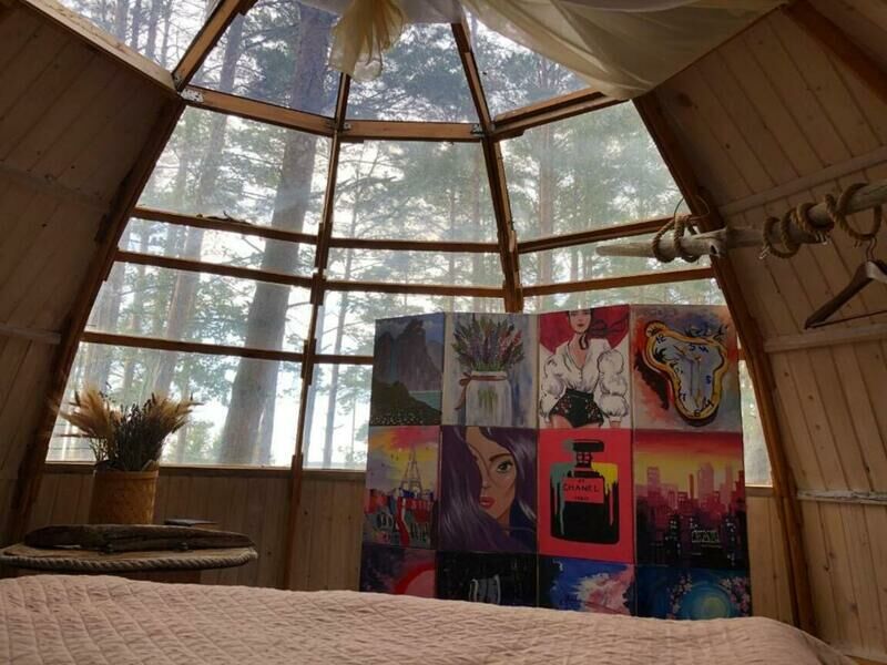 Двухместный Шатёр Геокупол с красивым видом из окна двуспальная кровать