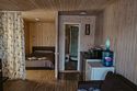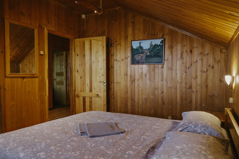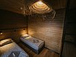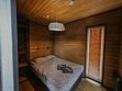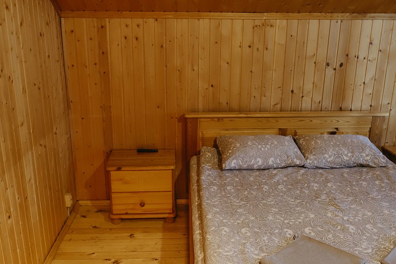 Коттедж с одной спальной комнатой (в спальной комнате две односпальные кровати, которые трансформируются в двуспальную), гостиной с диван-кроватью, раскладным креслом, электрическим чайником, спутниковым ТВ и всем необходимым для комфортного отдыха. Имеется мангал. Рядом с коттеджем расположена плавучая банька "Сардина" вмещающая в себя 5-х человек. Т.к. владельцы борются за чистоту озера, в коттедже установлен биотуалет.