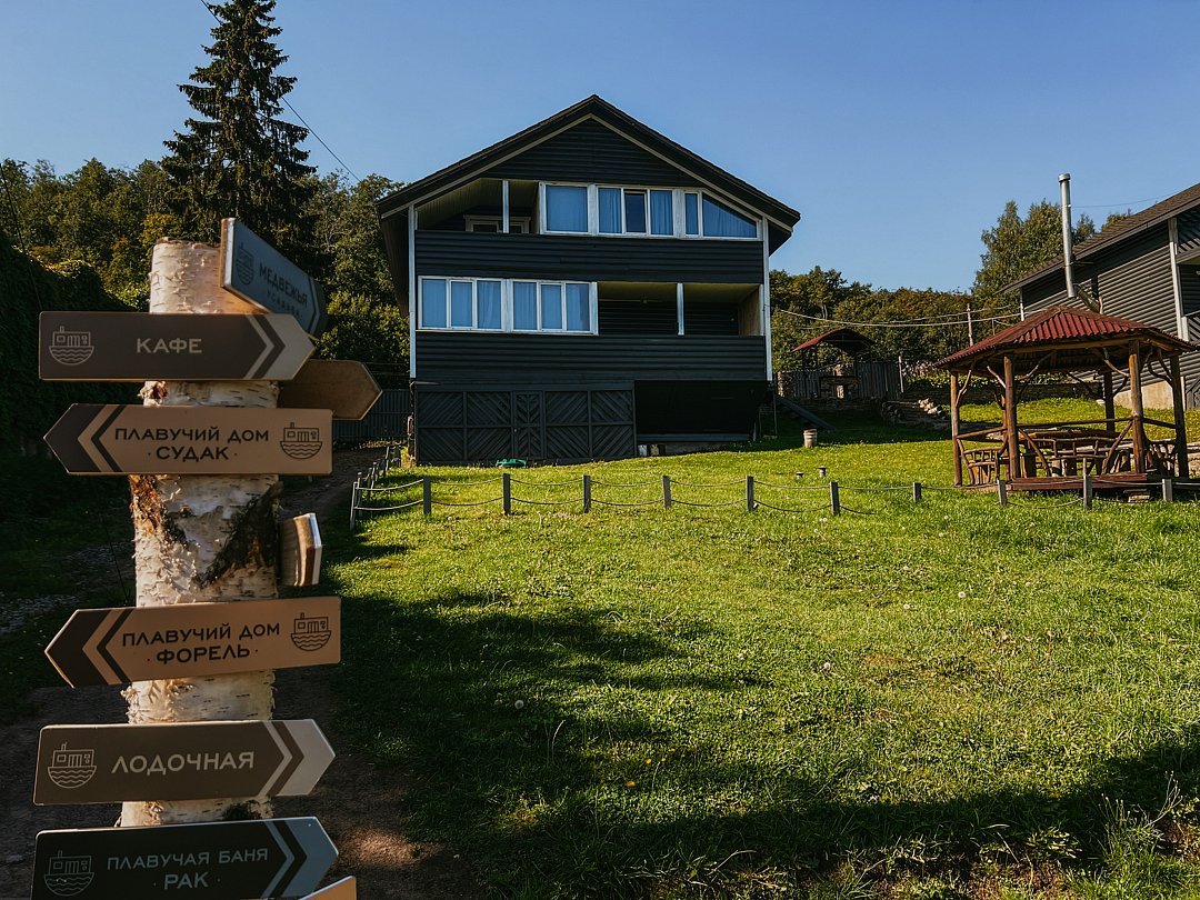 Семейный отдыхДостоинстваНас поселили в чудесной усадьбе. В глаза сразу бросается идеальная чистота - все прибрано, все на своих местах. Такой интересный формат размещения — дома на воде. Обязательно приеду сюда снова в гости