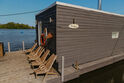 Уютный домик на воде, вмещающий в себя 4 человека, 1 спальня (огорожена выдвижной перегородкой), с большими окнами и открытой террасой.
