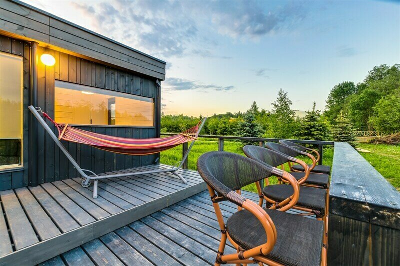 - Терраса: купель, уличная мебель, мангал, гамак.