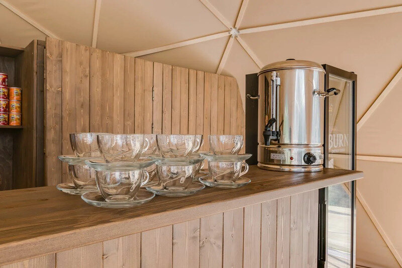 Рядом с домиками Лодж присутствуют доступные для бронирования купели, которые оплачивается отдельно по предварительному бронированию. Стоимость одной протопки — 5000 ₽, дополнительная протопка без смены воды — 2000 ₽.