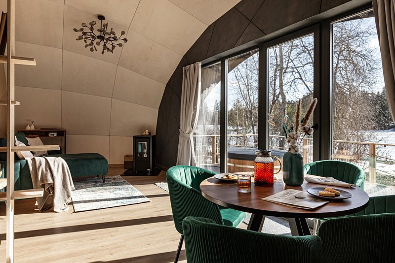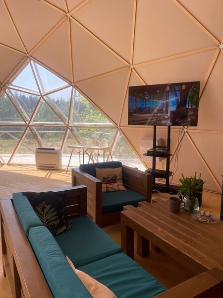 🔻Ощущение уединения. С двух сторон от сферы деревья, с третьей — озеро. Всё это создаёт уют и скрывает от посторонних взглядов.