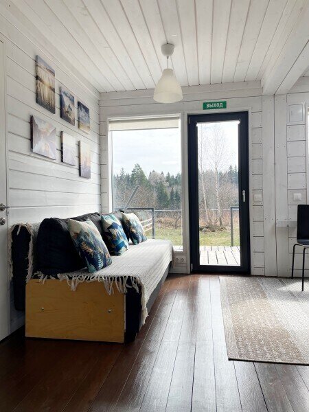 • Мебель: двуспальная кровать (на 2 этаже), двуспальный раскладной диван, ТВ, шкаф, прикроватные тумбочки, постельные принадлежности, полотенца, стол, стулья, предметы интерьера