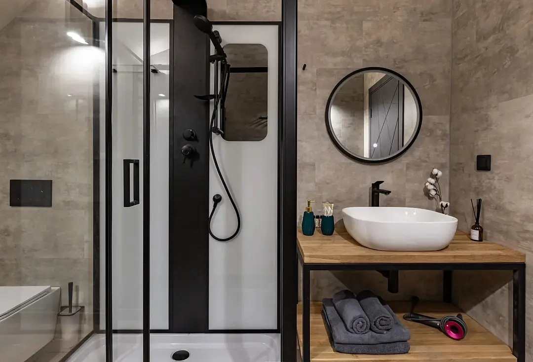 • Санузел: туалет, душевая кабина, раковина, фен, полотенца