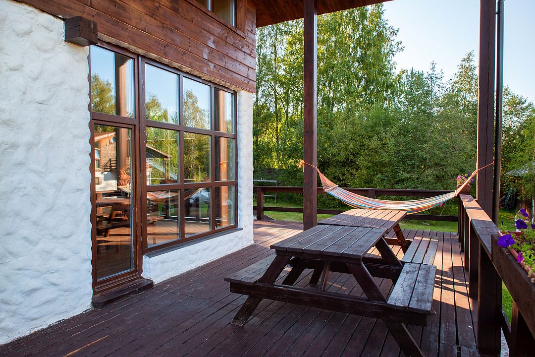 Короткий отпуск с друзьямиСупер место для отдыха большой компанией.Супер место для отдыха большой компанией(8 человек в коттедже) при этом ценник "не задран до небес"! Рядом чистое озеро, заход песочный. Мы бронировали 5 коттеджей, супер вариант для корпоратива. Персонал ненавязчивый, территория большая, ухоженные газоны, можно в теннис поиграть, хорошая мангальная зона у каждого коттеджа, а также есть общая зона для мангала. Прекрасные террасы с навесом, мы весь вечер провели там, коттедж шикарен, продумано все для комфортного отдыха, есть посудомойка, стир.машина, микроволновка, холодильник, супер гостиная, если плохая погода , никому тесно не будет, очень удобные кровати, матрасы