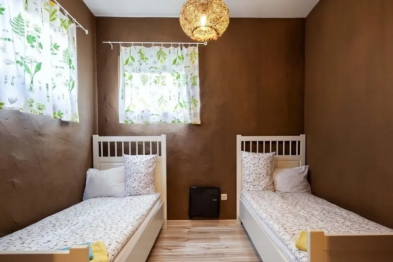 - кровати (две спальни оснащены двуспальными кроватями, две спальни с раздельными кроватями);