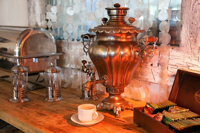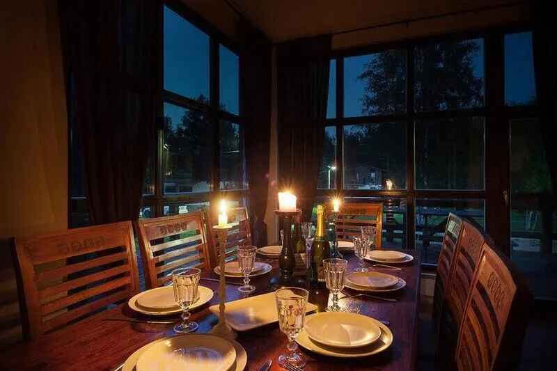 Тем, кто в путешествиях предпочитает исключительно отдыхать и не хочет готовить сам, комплекс может предложить трехразовое питание, включающее в себя завтрак, обед и ужин в ресторане на территории. Также возможна сервировка стола в коттедже. Заказать питание необходимо минимум за 10 дней до заезда.