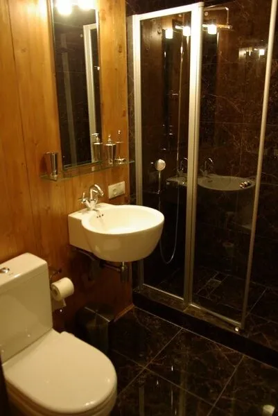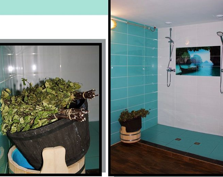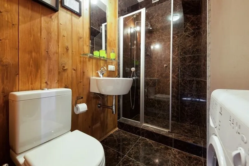 - две уютные душевые комнаты оборудованы швейцарской сантехникой и роскошно декорированы мраморной плиткой и деревом, располагаются на 1-ом и 2-ом этажах.