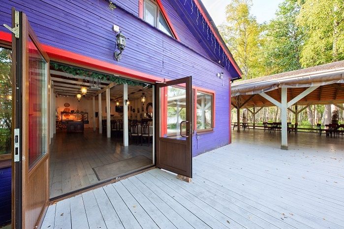 Гости базы отдыха «Шале рояль» могут посетить паровую баню и ресторан, а также отдохнуть на террасе.