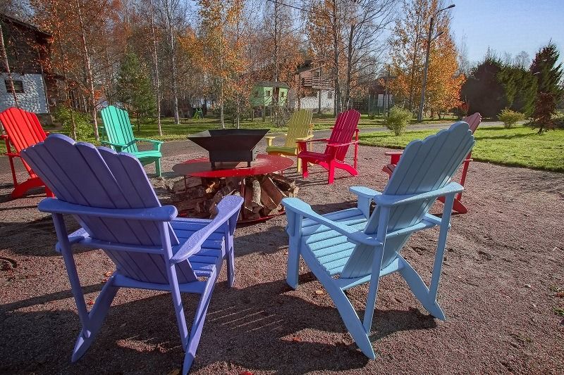 Захотелось посидеть у костра? Песни под гитару и барбекю с друзьями? Для этого в комплексе есть 2 костровые поляны, одна из них прямо на берегу озера.