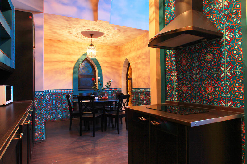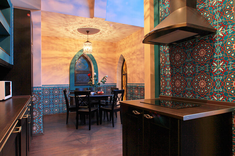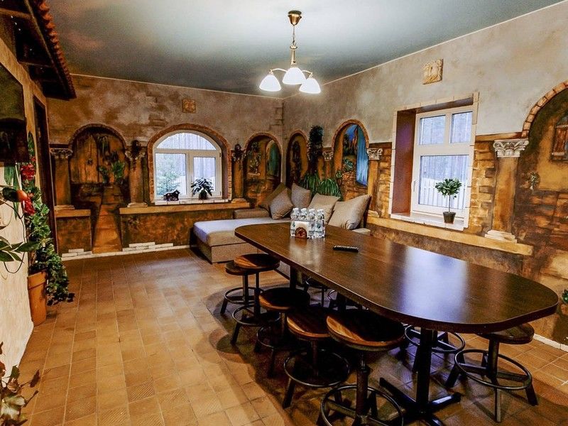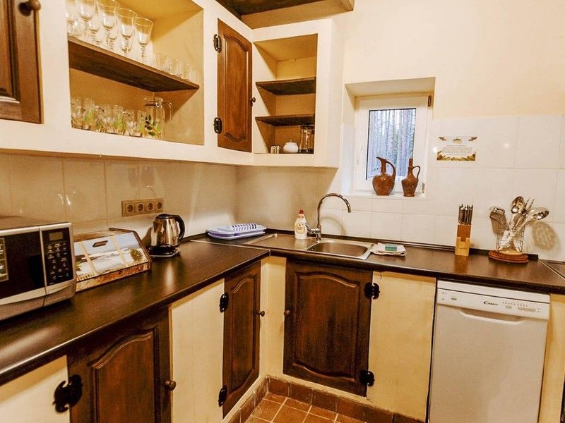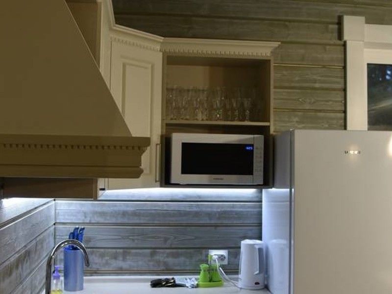 - кухню, где есть всё необходимое: холодильник, микроволновка, посудомоечная машина, варочная панель, эл.чайник, большой обеденный стол, столовые приборы, посуда;