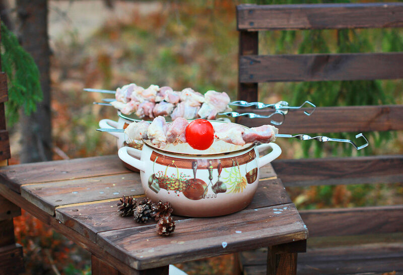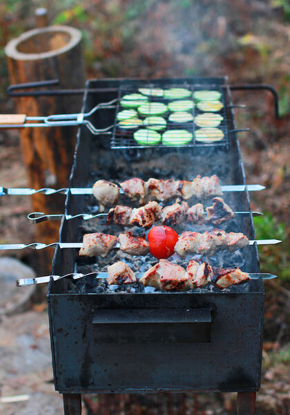 - зону барбекю: мангал под навесом, шампура, решетка для гриля;