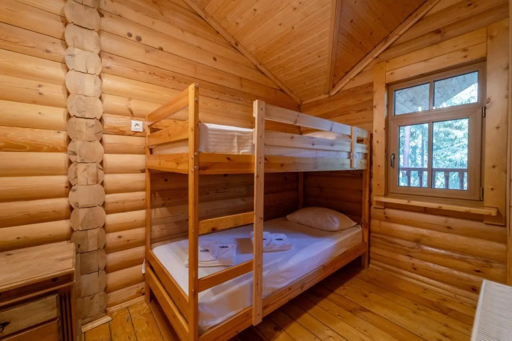- в отдельной комнате расположены две односпальные кровати, конструктивно независимые друг от друга и находящиеся на разных уровнях (кровати рассчитаны, как на детей, так и на взрослых);