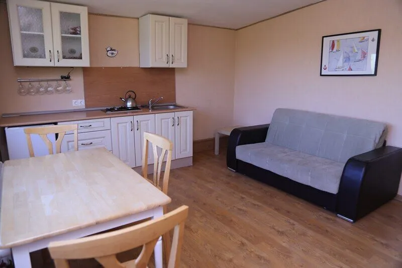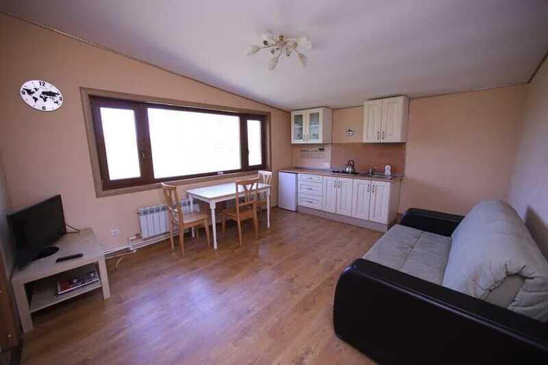 Дом со всеми удобствами. Гостиная совмещенная с кухней, две спальни (в одной двуспальная кровать), спутниковое ТВ, туалет, душ.