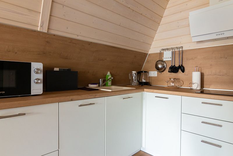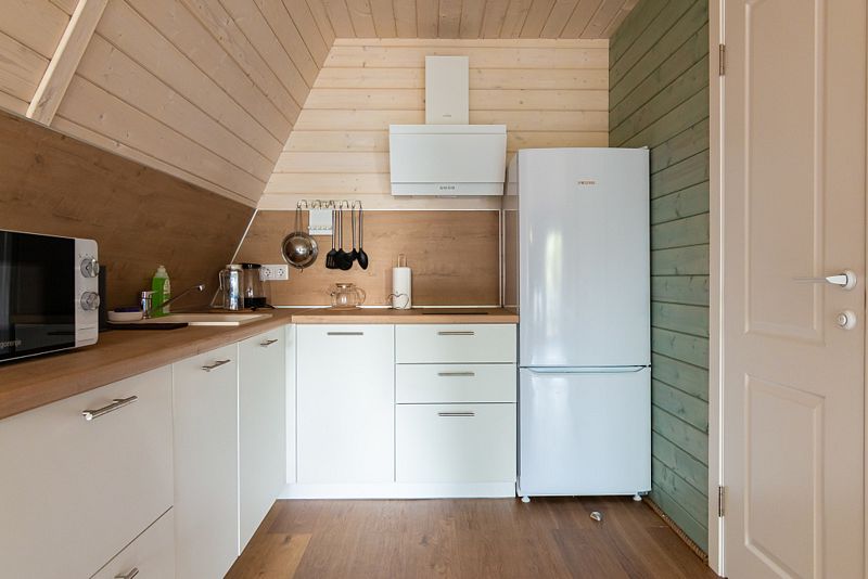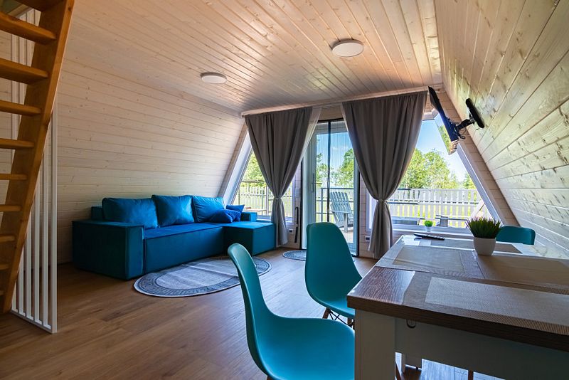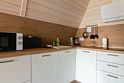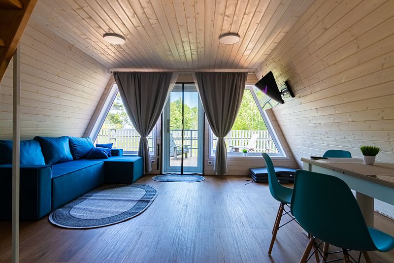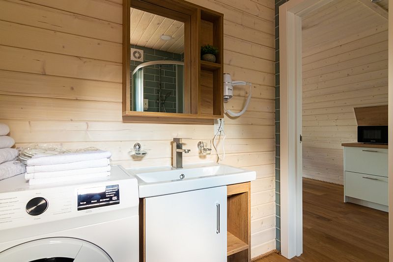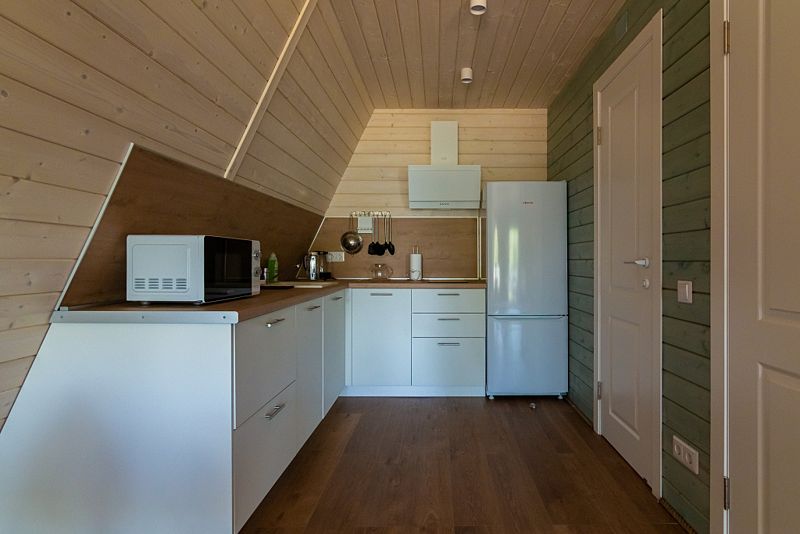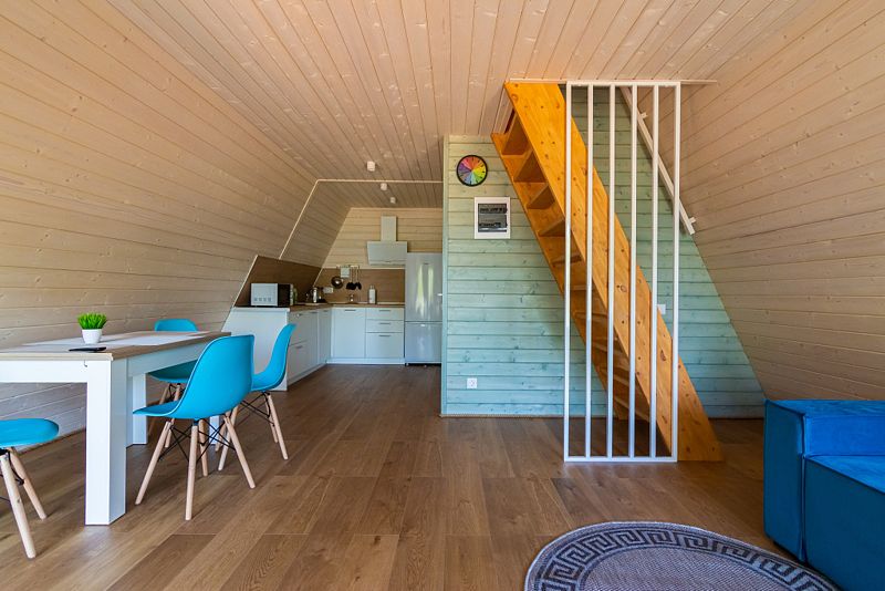 В доме находится полноценная кухня с микроволновой печью, холодильником, посудомоечной и стиральной машинами. Первый этаж - просторная кухня-гостинная с удобным диваном и телевизором. На втором этаже 2 комнаты с двухспальной и 2 односпальными кроватями с ортопедическими матрасами для более комфортного и спокойного сна.