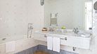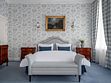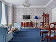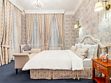 Просторный трехкомнатный номер, площадью 110 кв.м., оформленный в классическом стиле в золотых и зеленых тонах, прекрасно подойдёт для отдыха большой семье или двум парам. Уникальный по расположению и планировке, он совмещает в себе две полноценные спальни с персональными ванными комнатами, полностью отделанными мрамором, просторную гостиную, а также шикарную террасу с видом на бассейн и Финский залив.
