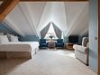 Просторный номер мансардного плана находится на 3м этаже основного корпуса Загородного клуба «Скандинавия» и СПА, общая площадь 60 кв. м., с изысканным интерьером в классическом стиле и элементами антиквариата, в дизайне интерьера преобладают бежево-зеленые тона. Гостиная и спальня разделены перегородкой, два TV, сейф, мини-бар. В гостиной находится два мягких кресла, двухместный диван, журнальный столик, шкаф-гардероб, кофейный столик со стульями. Спальня оборудована большой двухспальной кроватью, раскладным диваном, прикроватными тумбами, настольными лампами, торшером, у окна находится будуарное кресло. Вид из гостиной на дачу Лихачёва и бассейн, из спальни — на бизнес-центр. Ресторанное обслуживание в номере 24 часа.