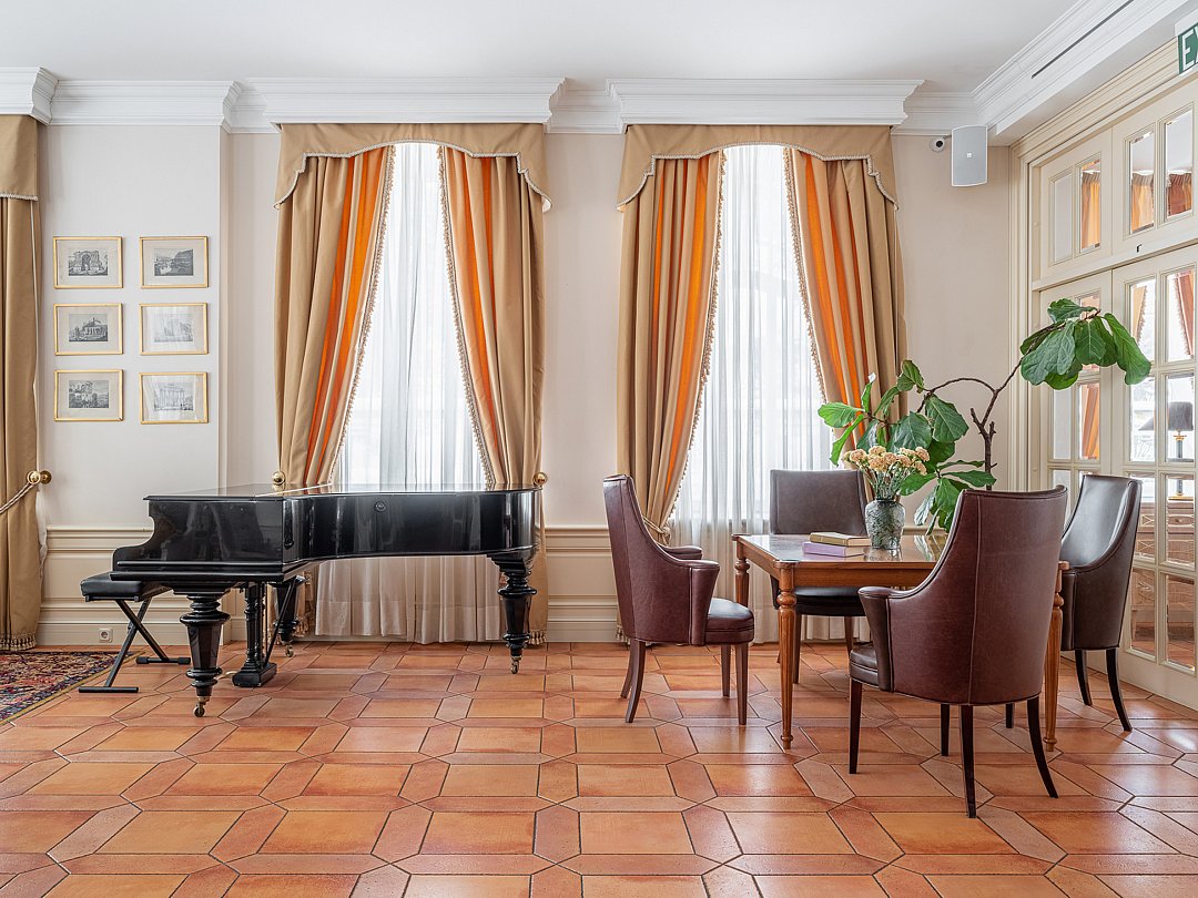 Элегантный однокомнатный номер, площадью более 40 кв. м., с изысканным интерьером в классическом стиле и элементами антиквариата. Номер оснащен собственной террасой с видом на Финский залив и персональной сауной. Здесь Вы найдёте всё для приятного романтического отдыха.