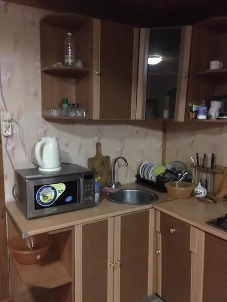 На первом этаже размещена игровая комната (русский бильярд, настольный футбол, дартс). На втором этаже, куда ведет отдельный вход, большая гостиная (около 50 кв.м.) с оборудованной кухней (мебель, газ.плита, вытяжка, холодильник, микроволновая печь, посуда). В гостиной двуспальный диван, 2 кресла, журнальный столик, телевизор, DVD-караоке, музыкальный центр. Две спальни по 12 кв.м. с видом на реку и липовые аллеи, в каждой спальне двуспальная и односпальная кровати. Санузел с душевой кабиной, электрический водонагреватель на 150 литров.