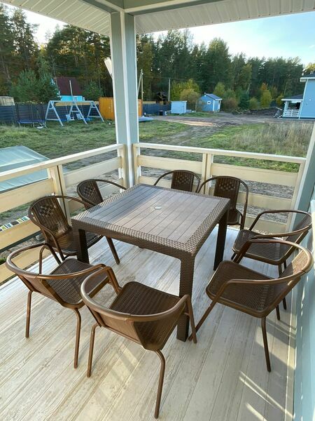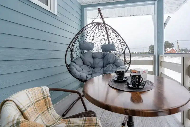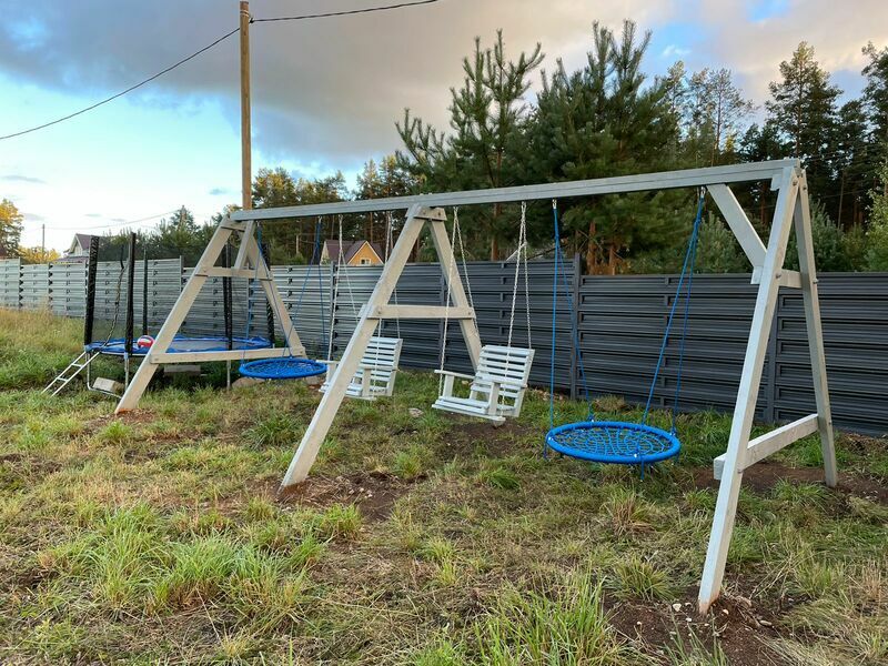 - 2 новых просторных гостевых дома по 140м с уютной мансардой с уличной мебелью и двухместным качелью коконом