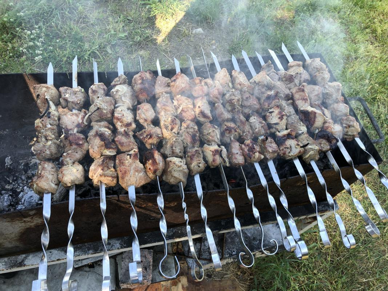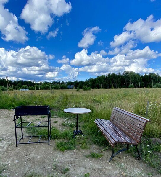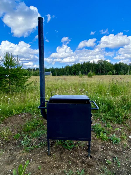 Гриль-зона с мангалом, коптильней и садовой мебелью.