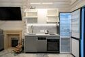 В доме имеются 2 спальни на первом и мансардном этажах и просторная кухня-гостиная с диваном, который обеспечивает еще 2 дополнительных спальных места. Кухня оборудована варочной панелью, духовым шкафом и посудомоечной машиной, есть холодильник, чайник, кофеварка и микроволновая печь. В гостиной установлен камин, есть телевизор, цифровое ТВ, Wi-Fi. В санузле имеются 2 душа, 2 туалетные комнаты, стиральная машина, фен. Баня находится в доме и топится дровами, вход через душевые.