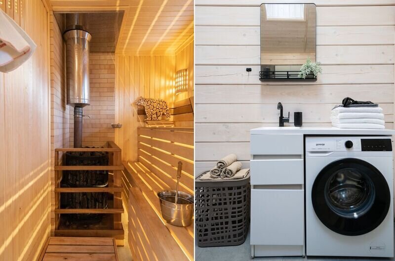 При аренде дома/коттеджа в вашем распоряжении будет собственная баня на дровах для 4-6 человек или электрическая сауна для компании до 10 человек. В одном из домов есть обливное ведро в душе, купель с холодной водой на террасе и банный чан на территории.