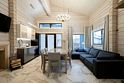 К услугам гостей 3 уютные спальни с двуспальными и раздельными кроватями на 1-ом и 2-ом этажах, кухня-гостиная с обеденной зоной, телевизором и двуспальным диваном. Кухня оборудована электроплитой, духовым шкафом и посудомоечной машиной, есть холодильник, чайник и микроволновая печь. На каждом этаже имеется санузел и душ. Есть стиральная машина и фен. Проведено водяное отопление, уложены теплые полы. Имеется WI-FI и цифровое телевидение.